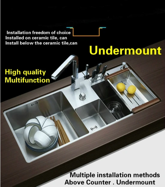 Best . (0% Off) Buy Free Shipping Apartment Big Kitchen Manual Sink Double Groove Push Button Drainer 304 Stainless Steel Hot Sell 960x430 MM Price Online.